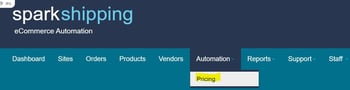 -From the Spark Shipping top menu bar, click "Automation" then "Pricing."
