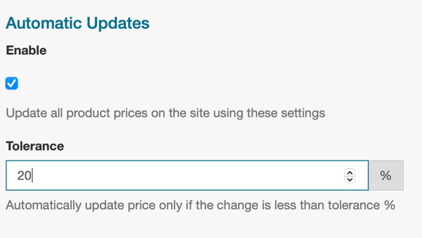 The tolerance is the maximum percent that Spark Shipping will automatically update a product's price.