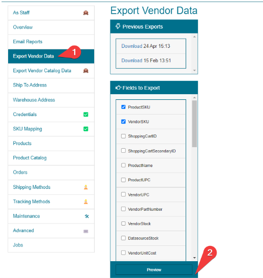 Step 1: Repeat this operation for all connected vendors that you deleted products in Amazon and wish for that to reflect within SparkShipping. You only need to export both