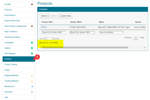Check for the total product counts in the tables of each vendor. You should start to see that the total value go down considerably, and at the end of an unmapping, it should be 0.