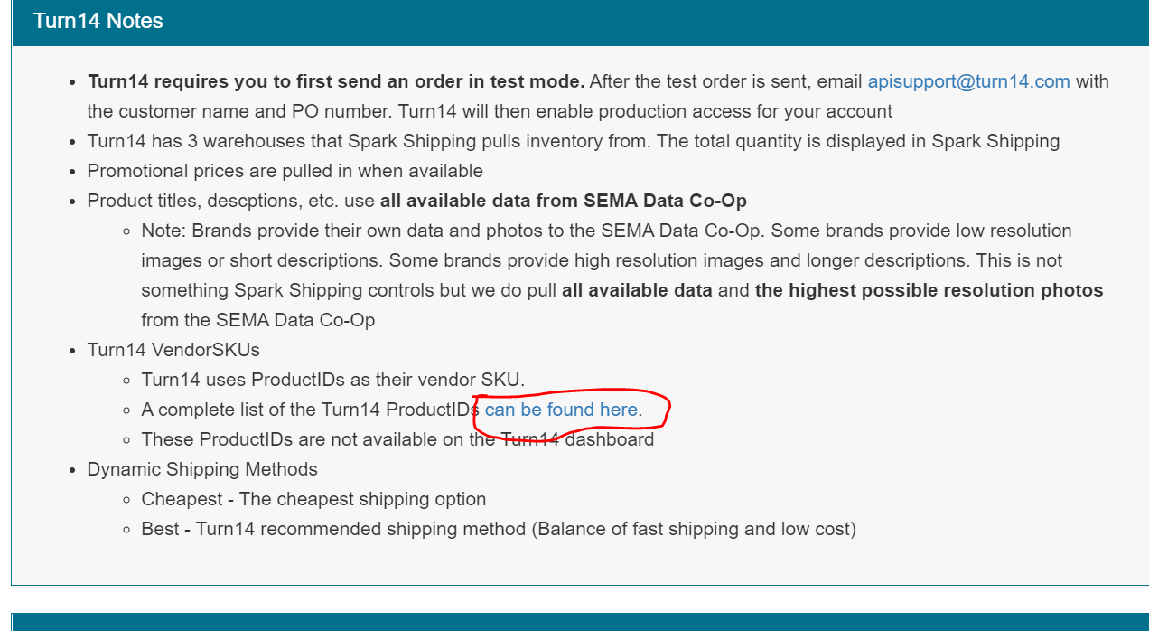 - Anytime you have pre-existing Turn 14 items on your site before you joined Spark Shipping