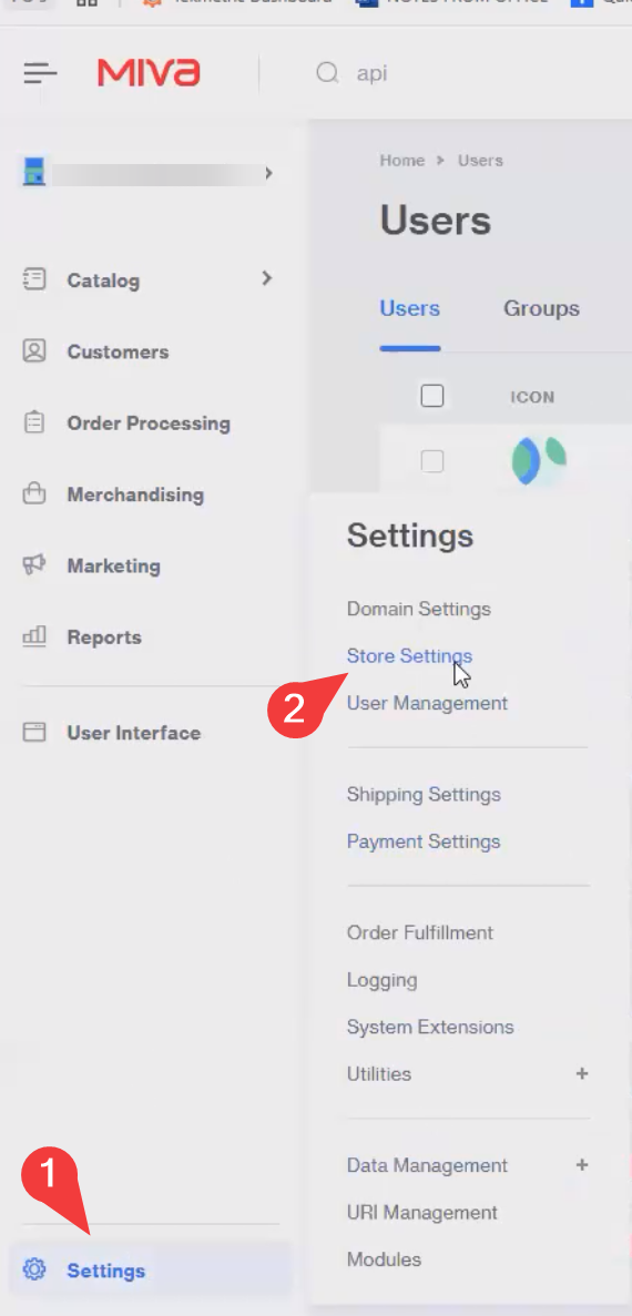 1.Go to your Miva Settings > Users Management > API Tokens, and click Add API Token.