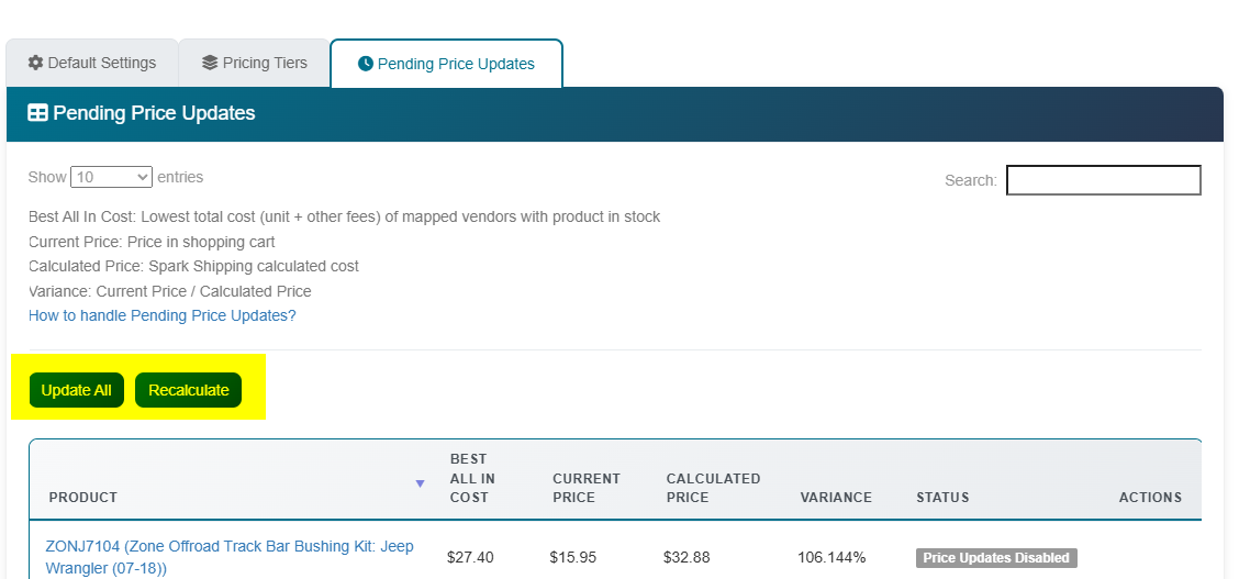 - Spark Shipping will immediately begin to recheck price updates for all products
